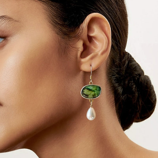 Kolczyki z niebieskim kamieniem i perłą w stylu vintage