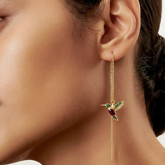 Kolczyki z emalią i cyrkoniami w kształcie kolibra
